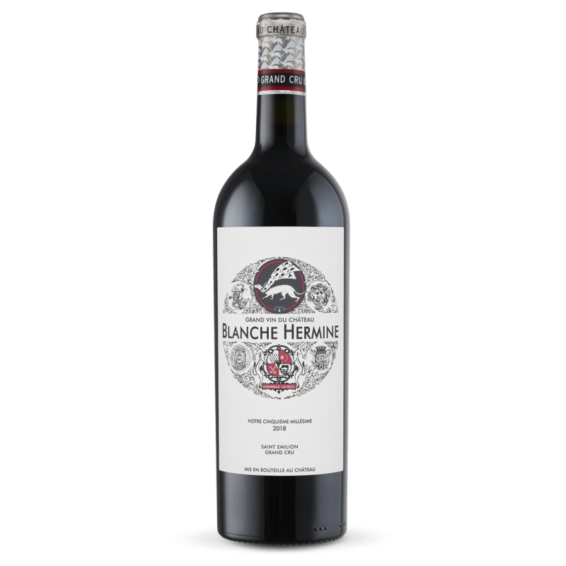 Le Saint Emilion Grand Cru Blanche Hermine 2018 propose un nez de Cabernet Franc marqué par la violette, le fumé et le chocolat.